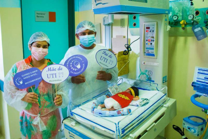 O Hospital Regional Público do Marajó (Breves/PA) promoveu no dia 17 ações de adesão ao Novembro Roxo, dentro do Dia Mundial da Prematuridade. Os bebês prematuros da Unidade de Terapia Intensiva Neonatal foram vestidos com fantasias de super-heróis, como Mulher Maravilha, Batman, The Flash e o Super-Homem. As fotos dos bebês serão entregues em porta-retratos aos pais.