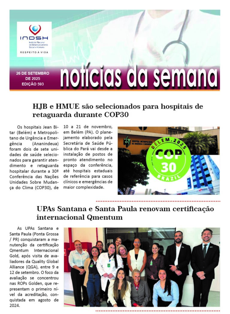 Notícias da Semana INDSH nº 593 - 26/9/2025