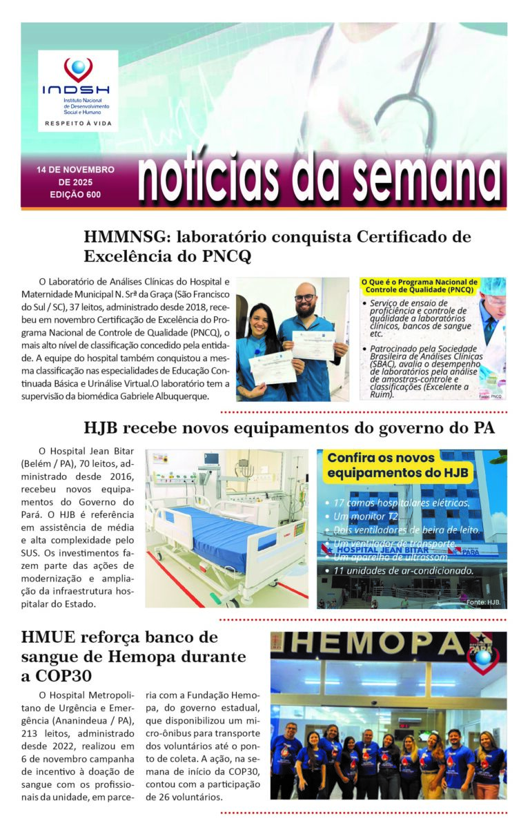 Notícias da Semana INDSH nº 600 - 14/11/2025