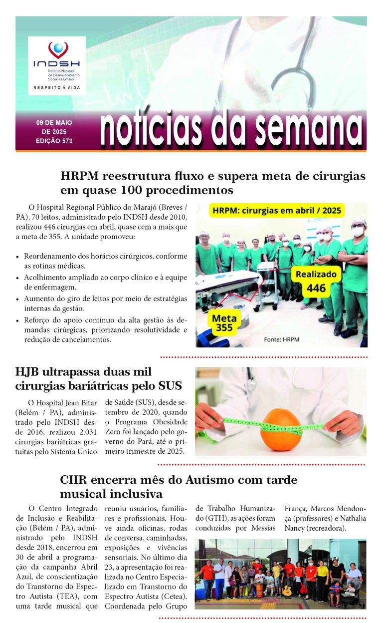 O INDSH divulga semanalmente as principais atividades das unidades administradas em todo o país. Confira.