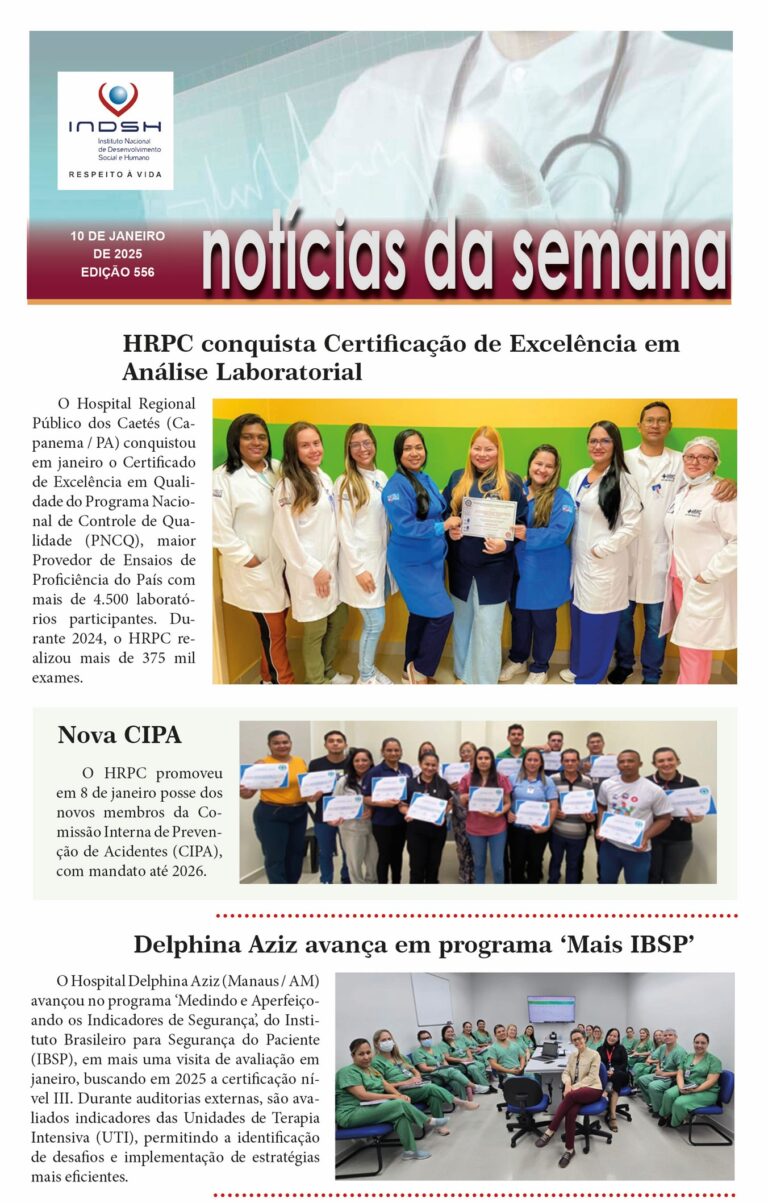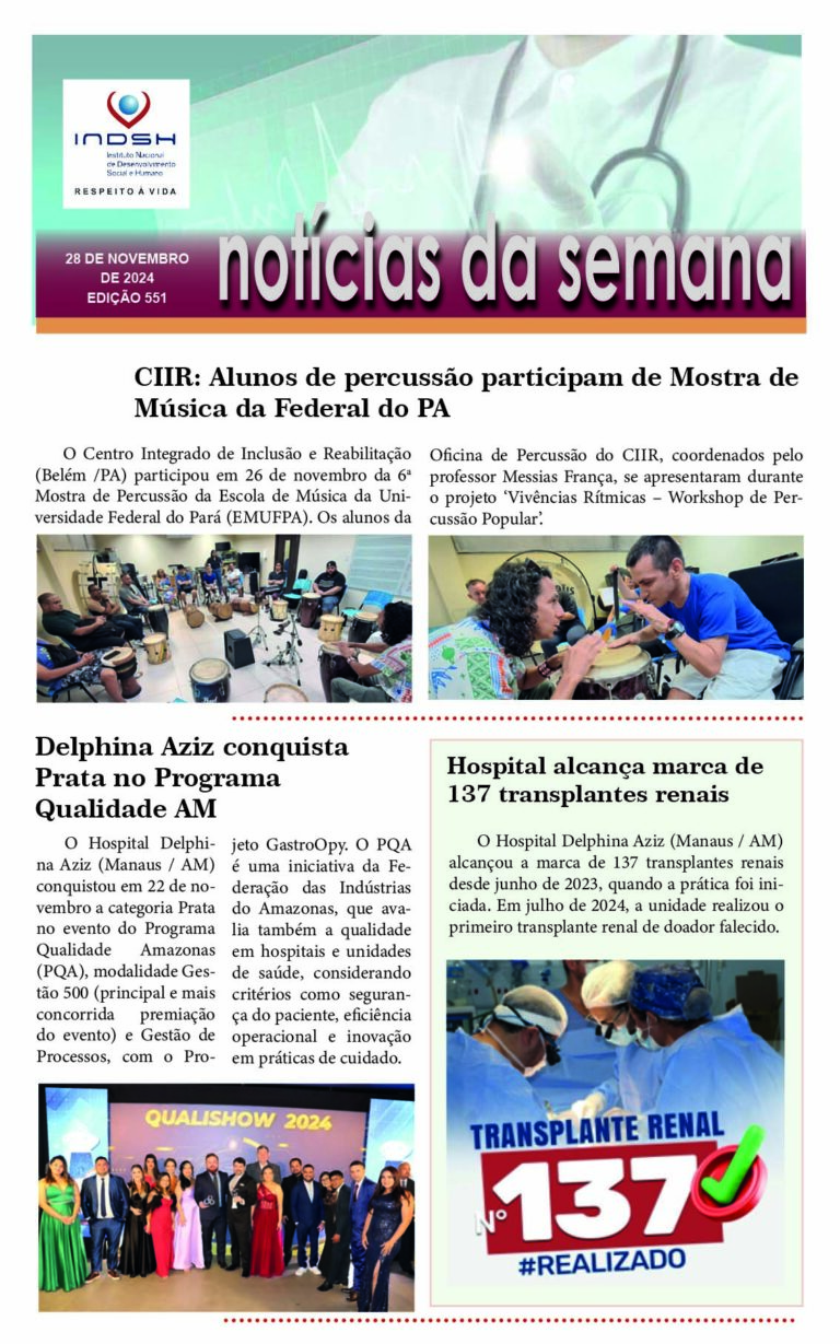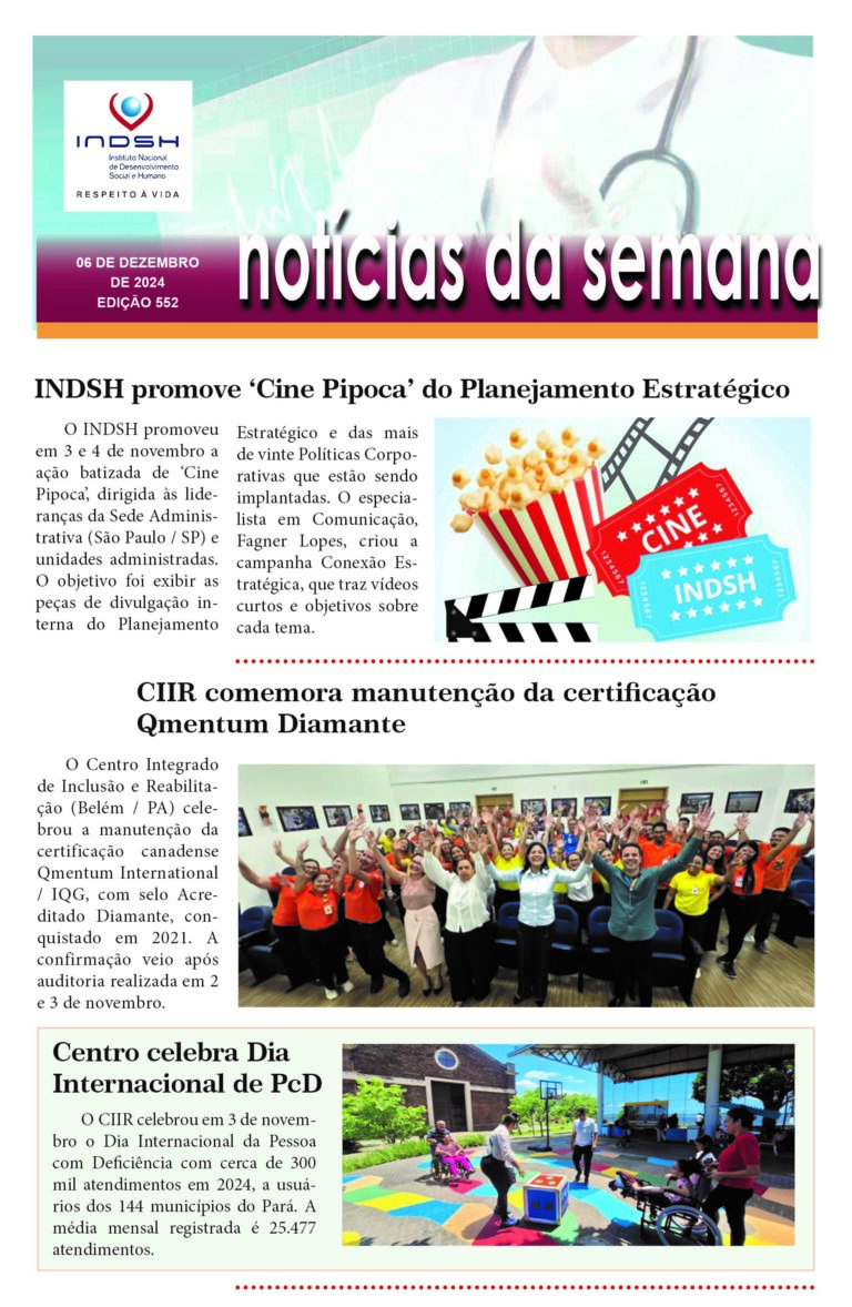 O INDSH divulga semanalmente as principais atividades das unidades administradas em todo o país. Confira.