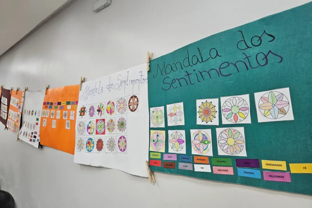 “A gente trabalha temas sobre qualidade de vida, trazendo debates sobre emoções e saúde mental. O objetivo dessa atividade foi justamente fazer com que os pais e responsáveis conseguissem identificar em si sentimentos que fazem parte de sua trajetória e quais destes sentimentos ecoaram durante a última semana. Então, eles engajaram na pintura e foram identificando o que veio à tona. Tivemos um resultado bem positivo”, destacou Thays.