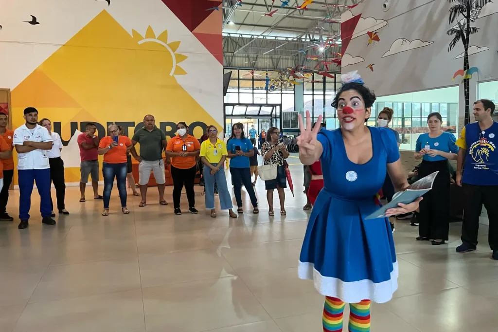 Intervenção artística – Durante a programação, a Palhaça Nanna Chorona, interpretada pela professora de Teatro do CIIR, Paula Barros, realizou uma intervenção lúdica para usuários, familiares e a equipe multiprofissional. A apresentação incluiu a leitura do livro “A Pontinha Menorzinha do Enfeitinho do Fim do Cabo de Uma Colherzinha de Café”, de Elvira Vigna, abordando, de forma poética, a importância do cuidado com o outro.