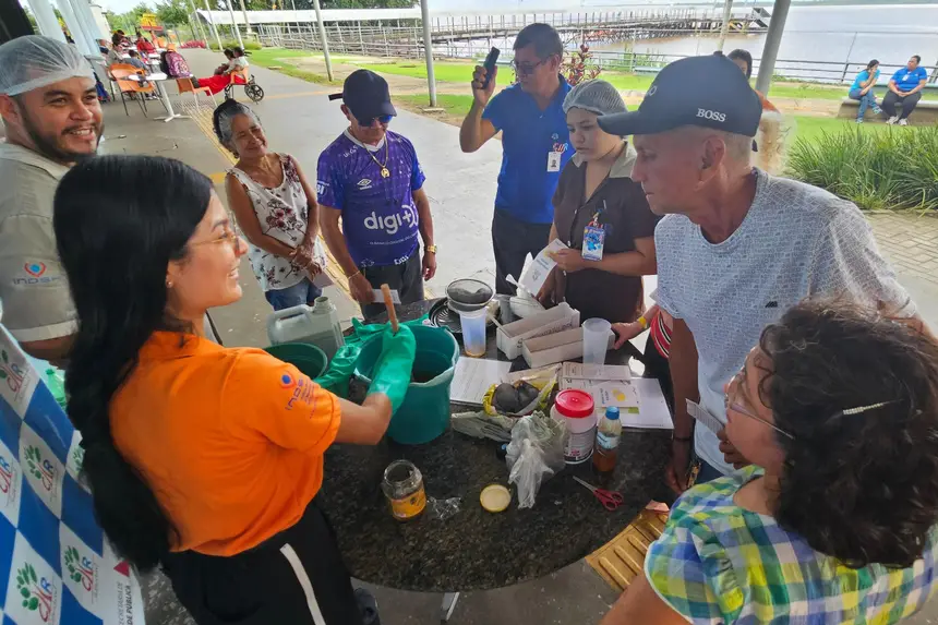 A ação de educação ambiental foi realizada na Orla do Centro, às margens da Baía do Guajará, reunindo usuários, acompanhantes e profissionais da instituição.