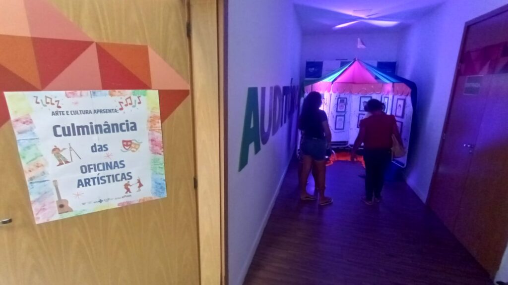 Foi exibida a produção realizada pelos reabilitandos durante as Oficinas integradas ao setor de Arte e Cultura, que trabalham as quatro linguagens artísticas: Teatro, Música, Dança e Artes Visuais.