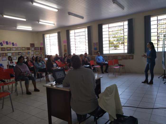 (2/7/2019) A coordenadora de Enfermagem do Hospital e Maternidade Municipal Nossa Senhora da Graça e da UPA 24 Horas, Alyne Basseto Borges, e a gerente de Média e Alta Complexidade da Secretaria Municipal de Saúde, enfermeira Thyana Caldeira, promoveram palestra neste fim de semana na Escola Santa Catarina, para candidatos do Conselho Tutelar de São Francisco do Sul (SC).