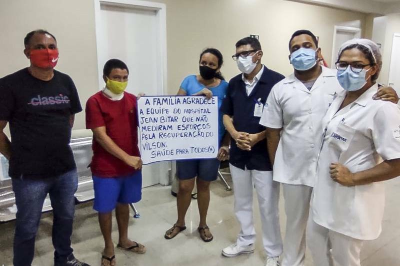 (8/1/2021) – A equipe do Hospital Jean Bitar (Belém/PA) recebeu uma homenagem da família de um paciente, que teve alta no dia 5 depois de quase trinta dias de internação.