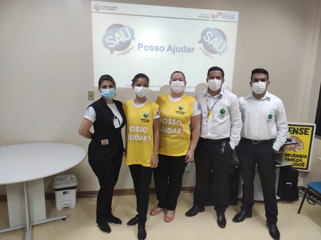 21/7/2021 – Os profissionais do Serviço de Atendimento ao Usuário (SAU) do Hospital Geral de Tailândia (PA) participaram no dia 12 de treinamento para reciclar e aprimorar o atendimento aos usuários. A partir dessa data, eles também estarão identificados com o colete ‘Posso Ajudar?’.