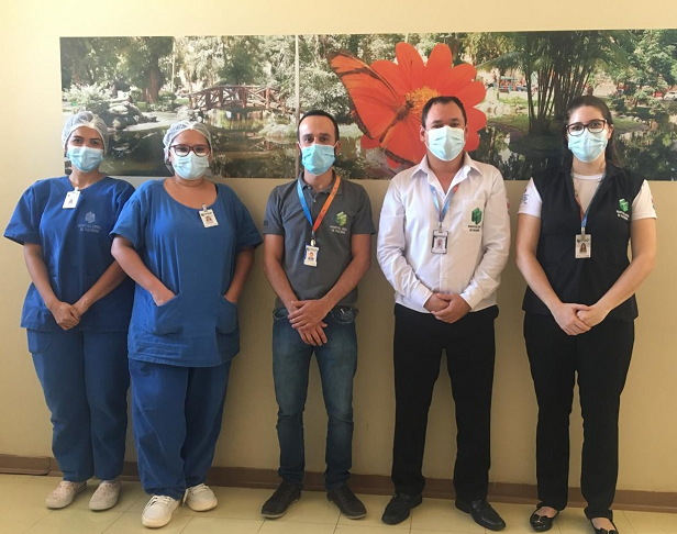 Neste momento, se destacaram: Mayza Soares (enfermeira); Natália Cabral (enfermeira); Edilto Franco (coordenador de Logística); Patrícia Manfredi (coordenadora do Serviço de Nutrição e Dietética); e Dimas Rezende Júnior (Serviço de Nutrição e Dietética).
