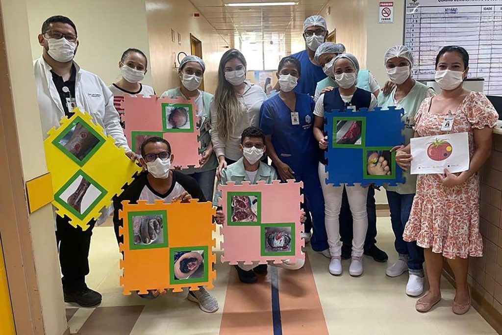 A presidente da Comissão de Curativos, Monique Rocha explica que as lesões por pressão, também conhecidas como escara ou úlcera de decúbito, surgem normalmente em locais próximos a regiões ósseas, devido à interrupção da circulação sanguínea e constante pressão. As feridas podem causar danos funcionais, aumento da dor e, até mesmo, risco de infecção. “A lesão por pressão, infelizmente, ainda é uma realidade preocupante. Por isso, se faz necessário que sempre estejamos capacitando nossos profissionais, afim de fornecer uma assistência segura e ainda melhor para todos os pacientes”, ressaltou.