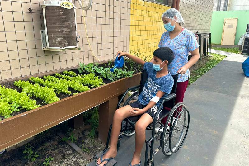 A nutricionista Patrícia Manfredi, madrinha do projeto, explica que a horta foi iniciado em 2019. No ano passado, a iniciativa recebeu novo impulso com parcerias com alunos de Agronegócio da Escola de Ensino Técnico do Estado do Pará (EETEPA) e Belém Bioenergia Brasil, empresa que ajudou na ampliação e construção de uma passarela para mobilidade dos usuários. “A Hortoterapia ainda ajuda no pensamento consciente com o meio ambiente”, continua Patrícia. “Recentemente foi instalado no local um minhocário e o HGT há algum tempo também realiza compostagem para reaproveitar os restos de alimentos como adubo para a horta”, finalizou Patrícia Manfredi.