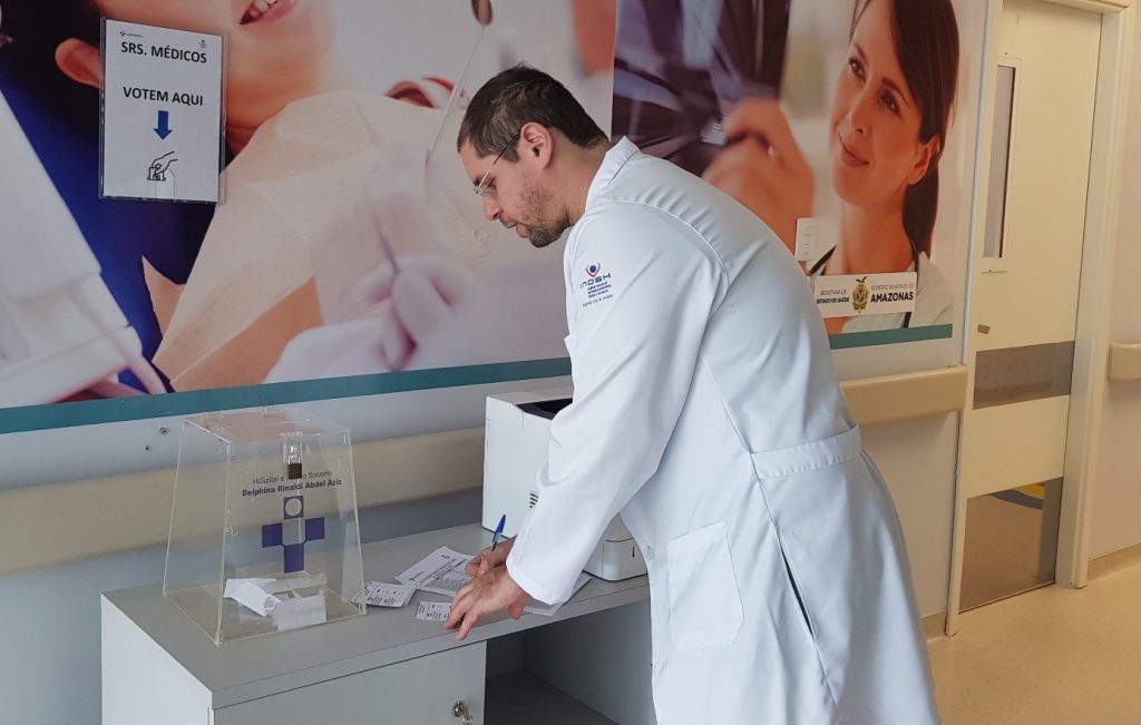 (7/10/2019) – O Hospital e Pronto-Socorro Delphina Aziz, em Manaus (AM), promoveu na semana passada eleição para Comissão de Ética Médica. “Cabe a Comissão Ética fiscalizar o exercício da atividade médica na instituição, bem como as condições de trabalho oferecida aos médicos e atendimento aos pacientes”, explicou o diretor clínico Igor Montenegro. A quantidade de membros da comissão varia conforme a quantidade de médicos que atuam na instituição, mas geralmente é formada por três a seis membros.