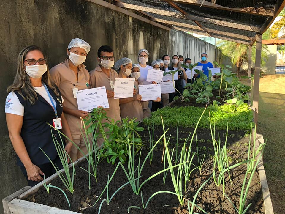 Também receberam o certificado as equipes do SND e do setor de Apoio, que deram continuidade ao Projeto do Grupo de Trabalho de Humanização (GTH), elaborado pela nutricionista. A ideia é ampliar a horta, que usa métodos naturais de controle, e a criação de compostagem orgânica, também com parceria da escola.