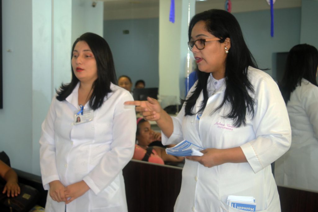 Durante toda esta sexta-feira (17) foram realizadas palestras nas áreas de atendimentos do hospital, ministradas pelas enfermeiras Juliana Cordeiro e Ana Flávia Oliveira, que abordaram os fatores de risco e as formas de prevenção do câncer de próstata, e distribuíram material educativo produzido especialmente para a campanha.