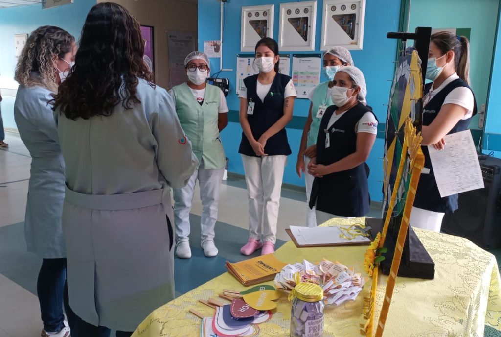 No hospital, a ação foi direcionada aos funcionários, usuários, acompanhantes e a outros interessados. Foram realizadas ainda dinâmicas para envolver o público-alvo, incluindo roleta dos mitos e verdades sobre saúde mental; simulação ‘Estoure Sua Dor’, utilizando balões, e entrega de ‘doces de alegria’”’ com frases motivacionais, doação de brindes e fita amarela da campanha.