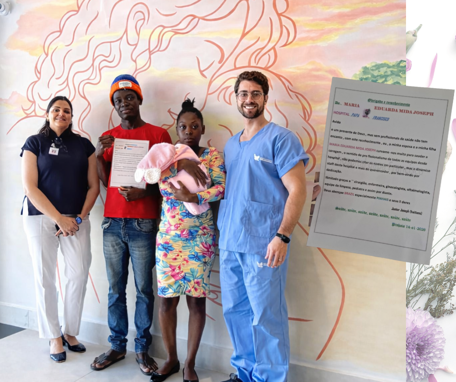 O Hospital e Maternidade Municipal Papa Francisco, em Pinhais (PR), 90 leitos, administrado desde 2025, recebeu reconhecimento de uma família haitiana, que entregou uma carta de agradecimento pelo cuidado e acolhimento prestados durante o nascimento da filha, Maria Eduarda. O texto da carta em resumo diz que: “De: Maria Eduarda ...