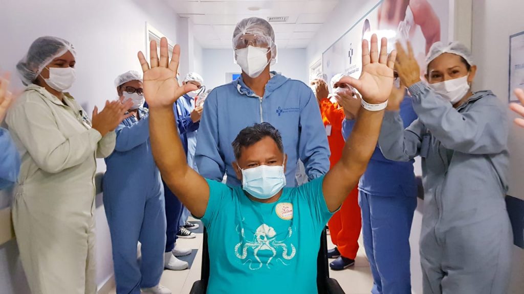 (29/1/2020) C.L., 48 anos, foi o primeiro paciente a receber alta na Enfermaria de Campanha do Hospital Delphina Aziz, em Manaus (AM). O paciente ficou oito dias internado no leito clínico do hospital, sendo transferido no dia 27 para a enfermaria de campanha.